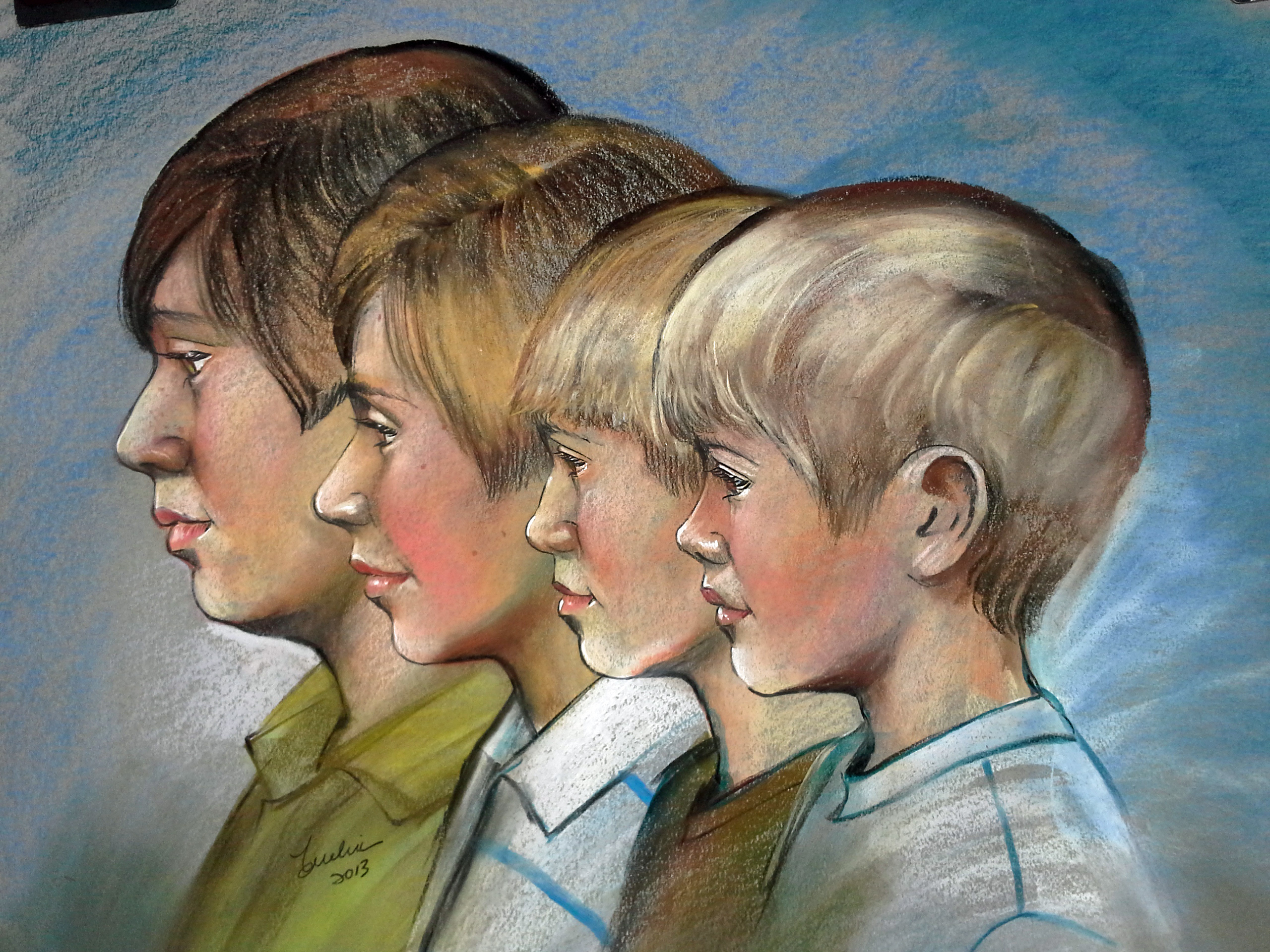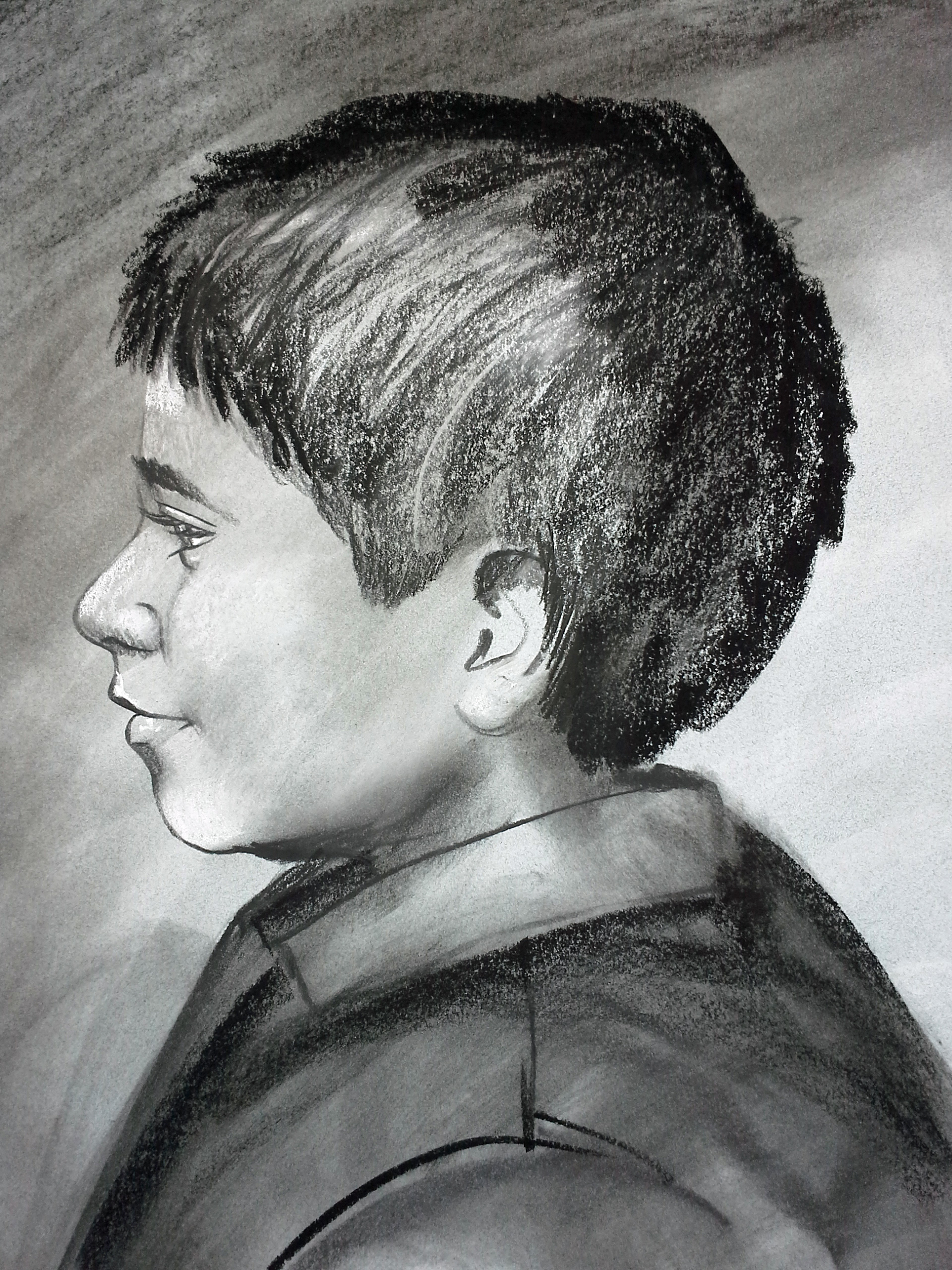 Widely known as the “Fastest Draw in the West” Cecelia has completed all of the below black and white charcoal profiles in less than 5 minutes. They are on 12 x 16 pastel paper for $50 and are done from live sittings only at her scheduled art shows. Group sittings are discounted per face, and color profiles take 10 minutes for $70 each.