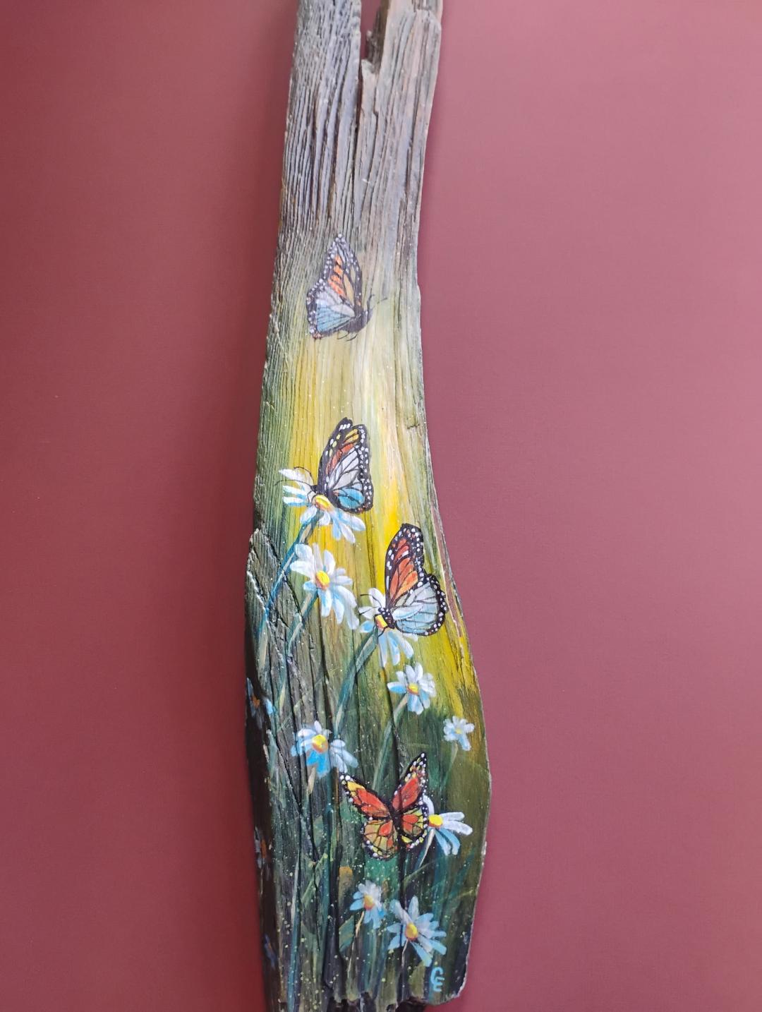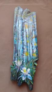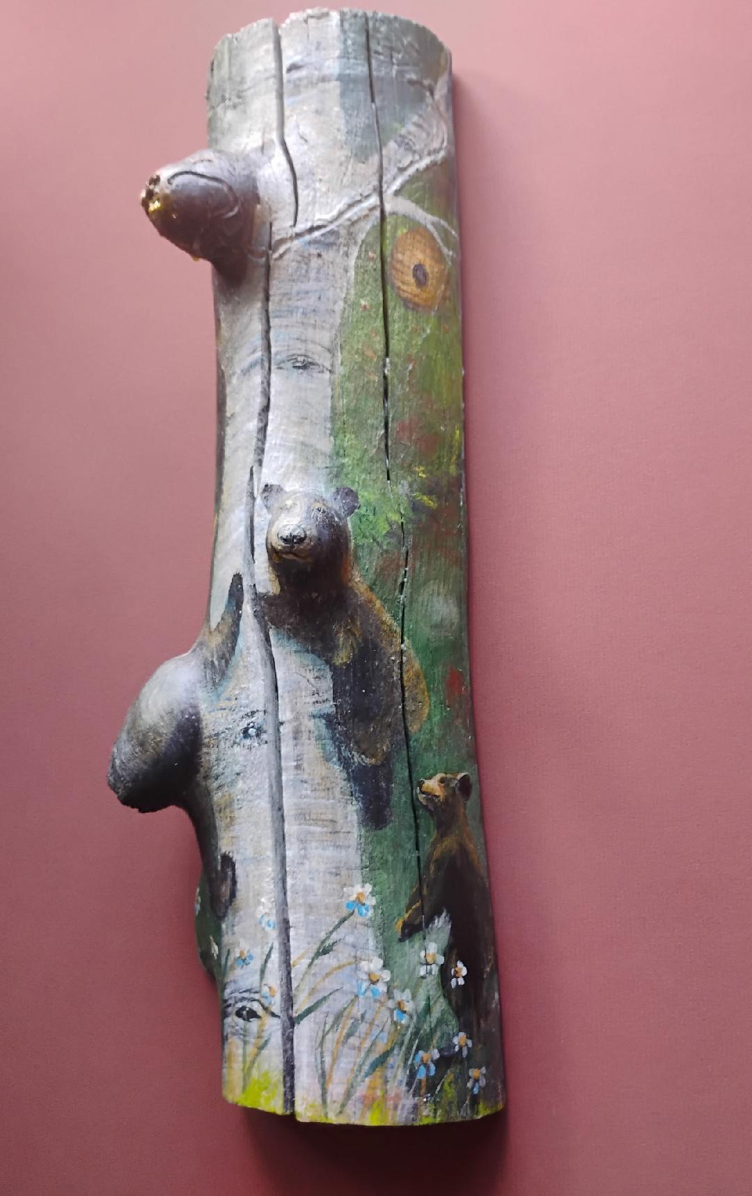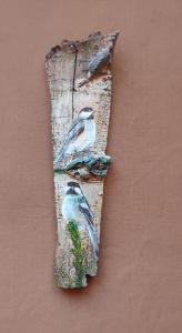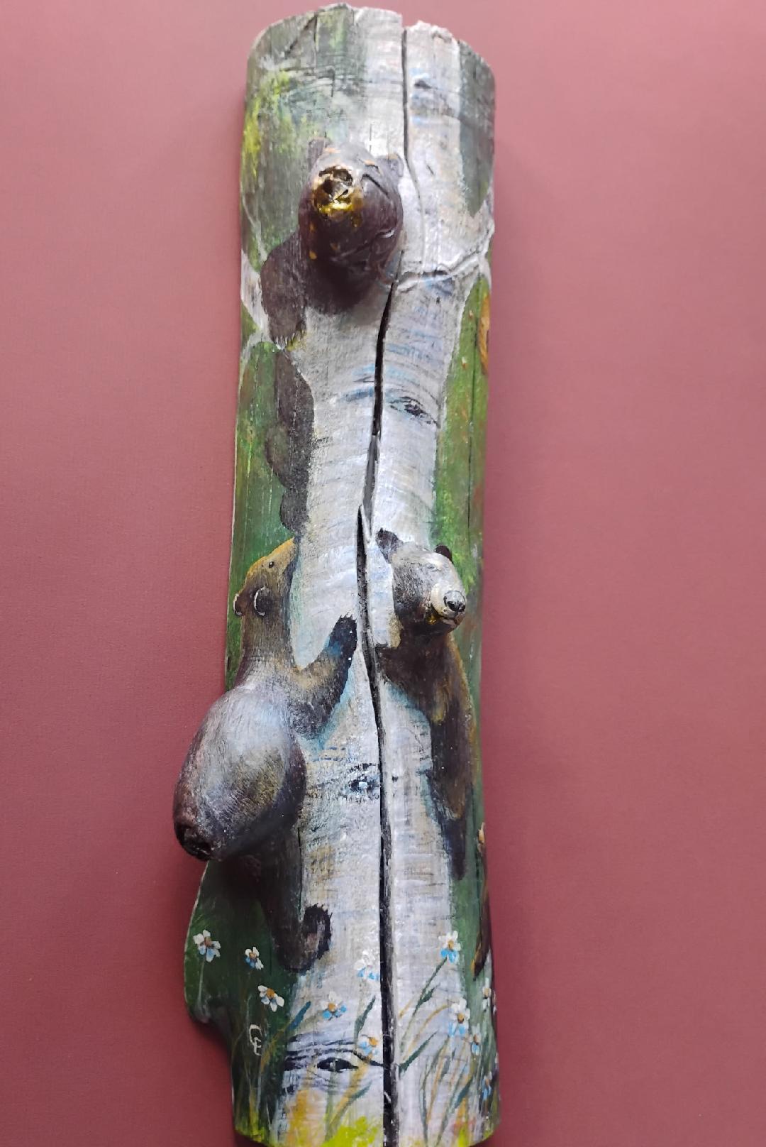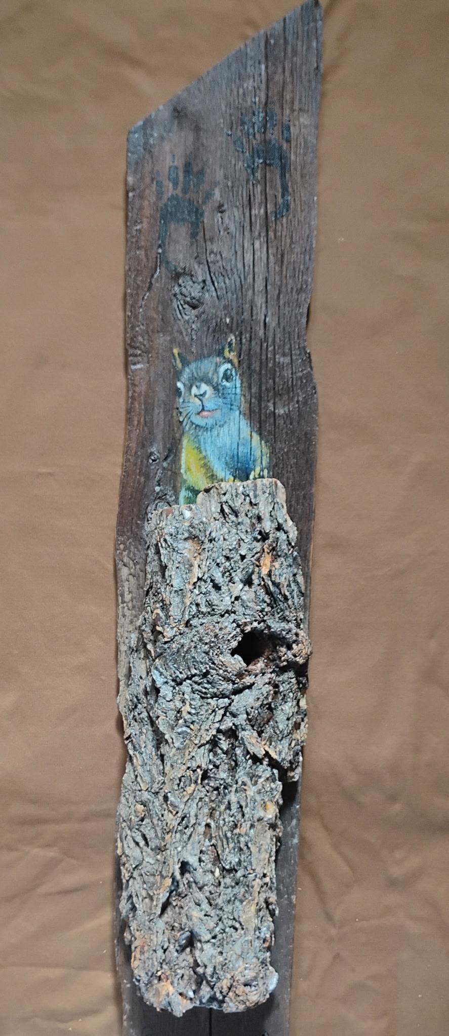 As an avid hiker Cecelia enjoys searching for unusual pieces of wood from the forest floors while exploring Colorado trails. She carefully conceives of special images to hand paint on each unique piece. Its a beautiful and clever interchange between nature and artist. This eco friendly approach is naturally sustainable and enriching as it leaves no waste products or plastics in the creation process not to mention that Cecelia often carries more trash out of the forest than wood!