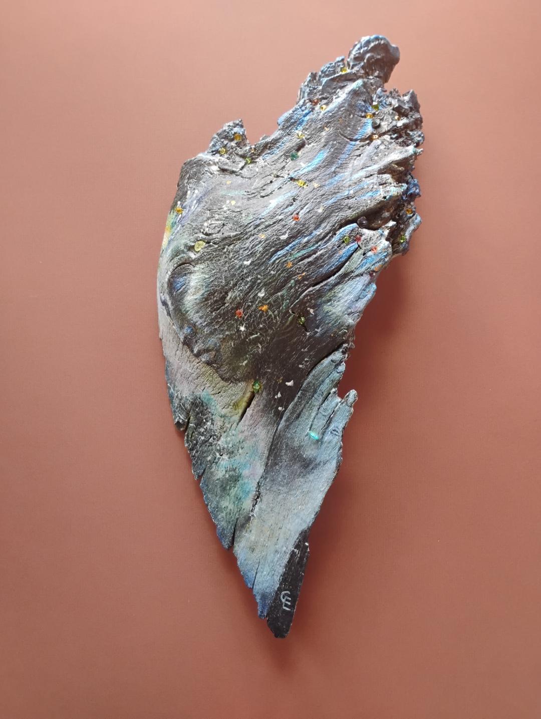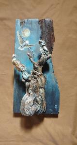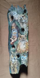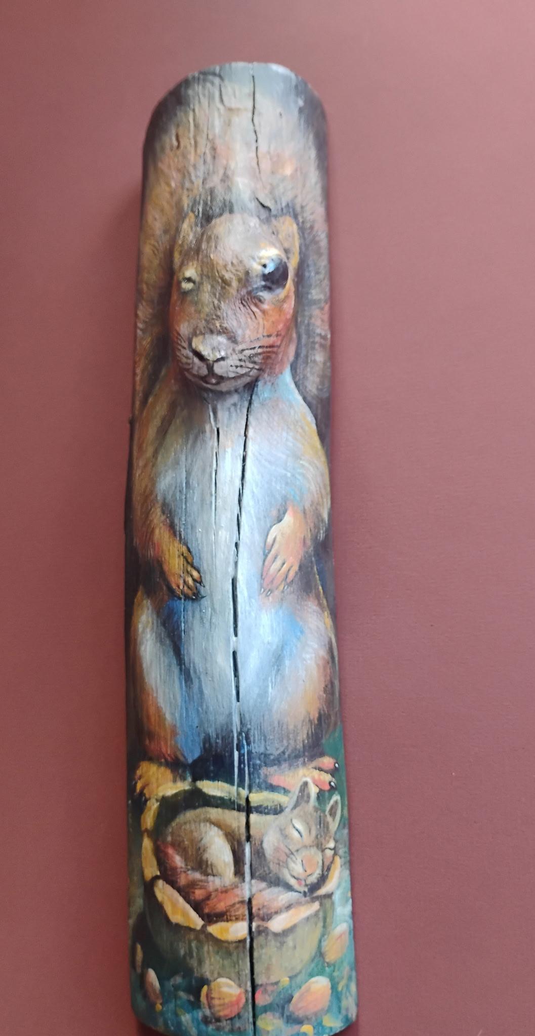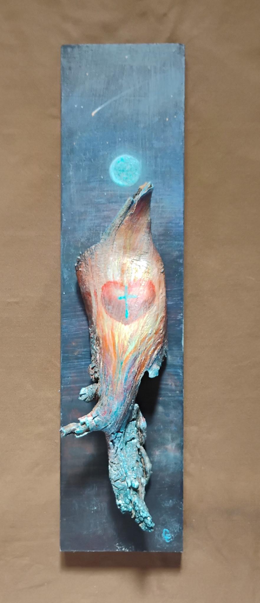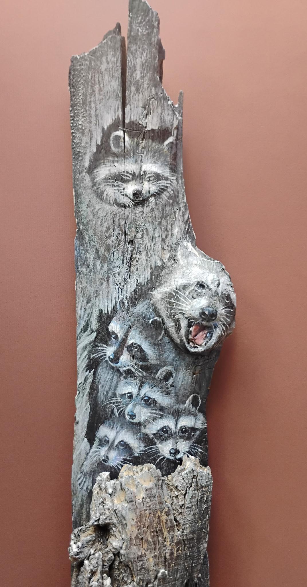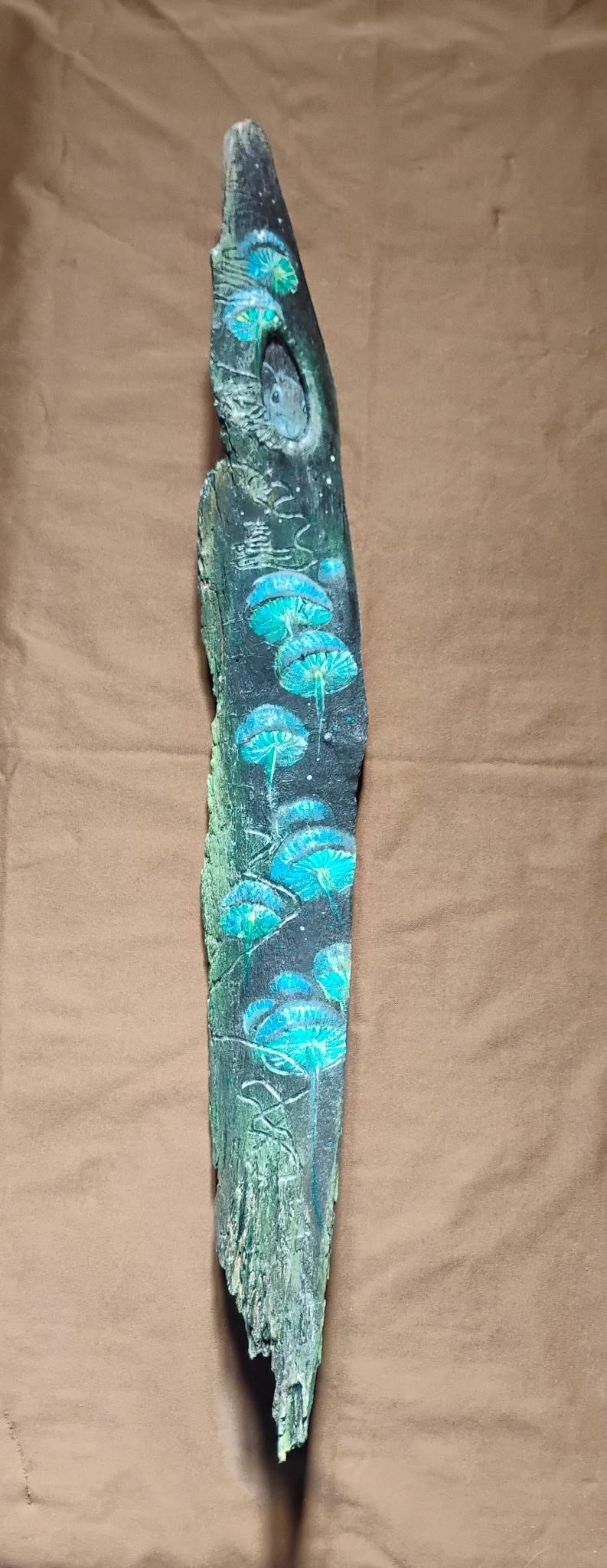 As an avid hiker Cecelia enjoys searching for unusual pieces of wood from the forest floors while exploring Colorado trails. She carefully conceives of special images to hand paint on each unique piece. Its a beautiful and clever interchange between nature and artist. This eco friendly approach is naturally sustainable and enriching as it leaves no waste products or plastics in the creation process not to mention that Cecelia often carries more trash out of the forest than wood!
